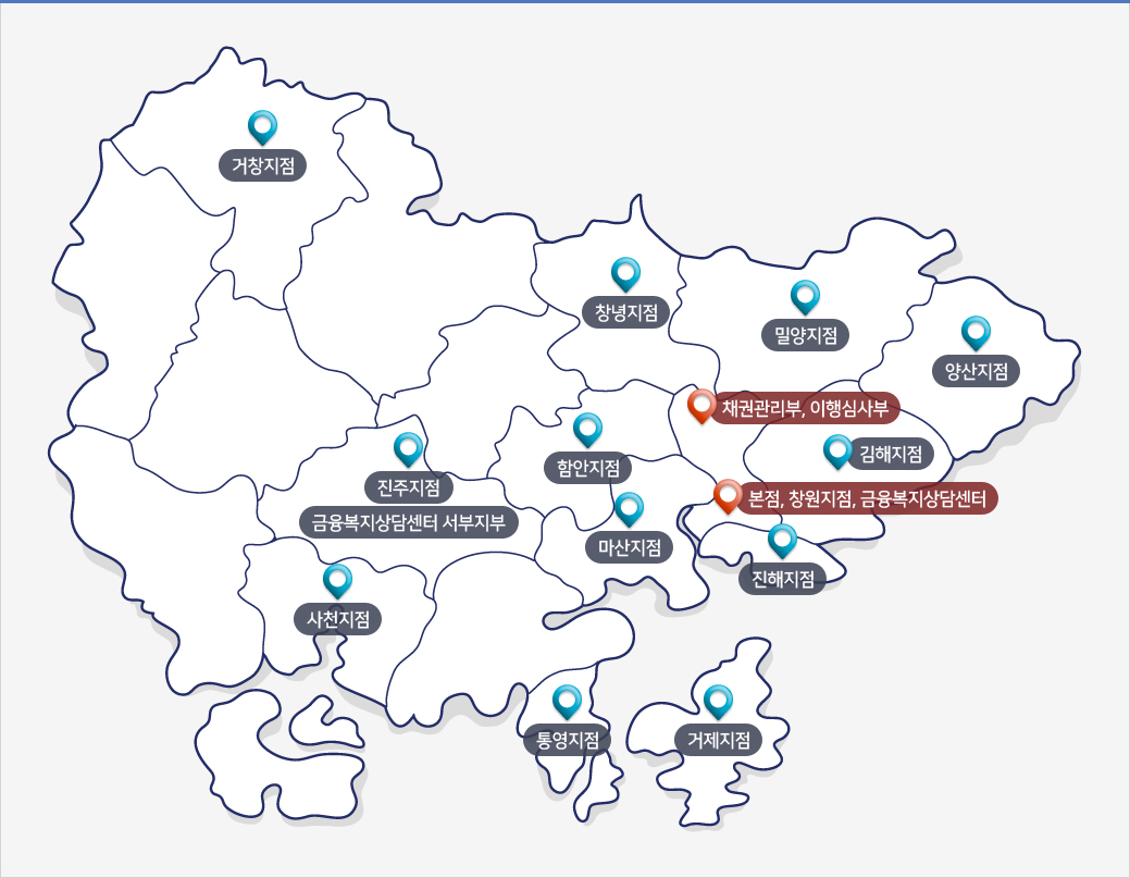 창녕지점 | 경남 창녕군 창녕읍 종로 18, 2층 (NH 농협은행 창녕군지부 2층) |
