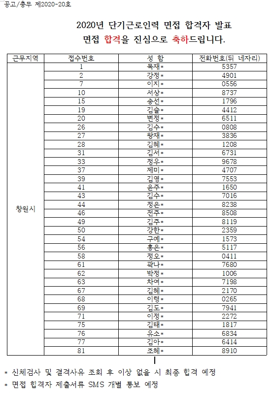공고/총무 제2020-20호 2020년도 단기근로인력(3개월) 면접합격자 발표 페이지 정보 작성자 경남신용보증재단 댓글 0건 조회 2,582회 작성일 20-03-30 20:48 본문 . 목록 이전글공고/총무 제2020-21호 2020년도 단기근로인력(육아휴직대체자) 채용 공고 20.04.13 다음글공고/총무 제2020-18호 2020년도 단기근로인력(3개월) 채용 서류전형 합격자 및 면접대상자 발표 20.03.26
