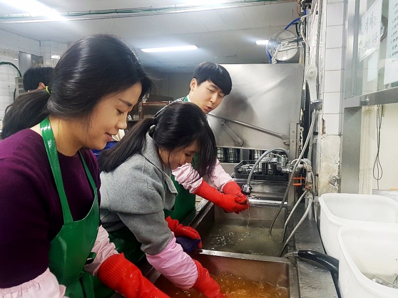 □ 해마다 재단 직원들이 매월 참여하고 있는 복지관 경로식당 배식 및 설거지 돕기 봉사활동을 2019년을 맞이하여 처음 실시하였다.