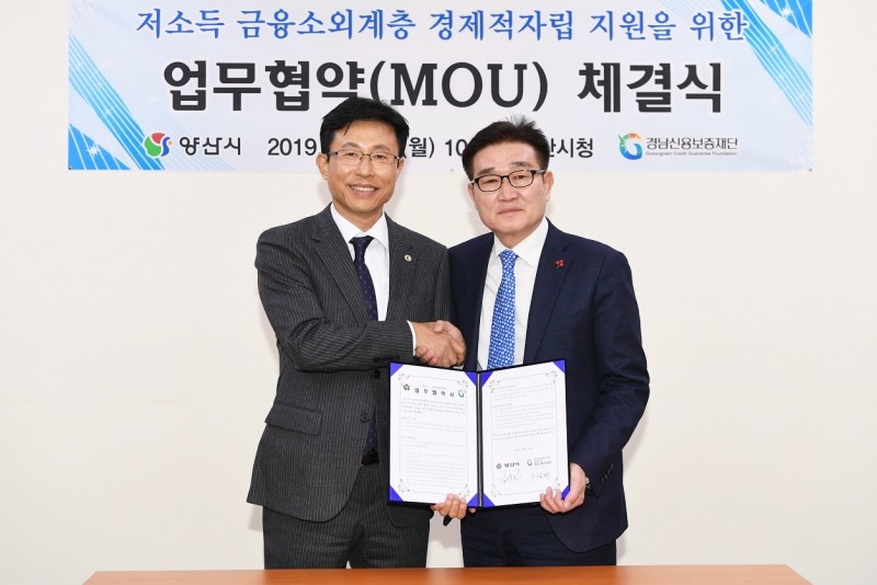양산시와의 저소득금융소외계층 자립지원을 위한 업무협약식(2019.2.11) 페이지 정보 작성자경남신용보증재단 댓글 0건 조회 1,157회 작성일 19-02-15 13:11 본문 □ 양산시와 우리재단(금융복지상담센터)이 양산시 관내 저소득 금융취약가구의 자활자립 지원을 위한 업무협약을 체결했다. 목록 이전글남해군 소상공인 지원을 위한 업무협약식(2019.2.12) 19.02.15 다음글경남대학교와의 산학협력 가족회사 협약식(19.1.28) 19.01.28
