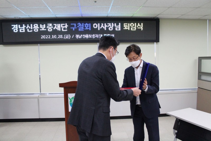 구철회 이사장님 퇴임식(2022.10.28) 페이지 정보 작성자경남신용보증재단 댓글 0건 조회 1,229회 작성일 22-11-24 10:49 본문 □ 4년간의 임기를 마치고 2022.10.31일자로 퇴임하시는 구철회 이사장님의 그동안의 노고를 치하하고 감사의 마음을 전하는 자리를 가졌다. 목록 이전글환경정화 봉사활동(2022.11.16) 22.11.24 다음글2023년도 임금협약 체결(2022.10.28) 22.11.24