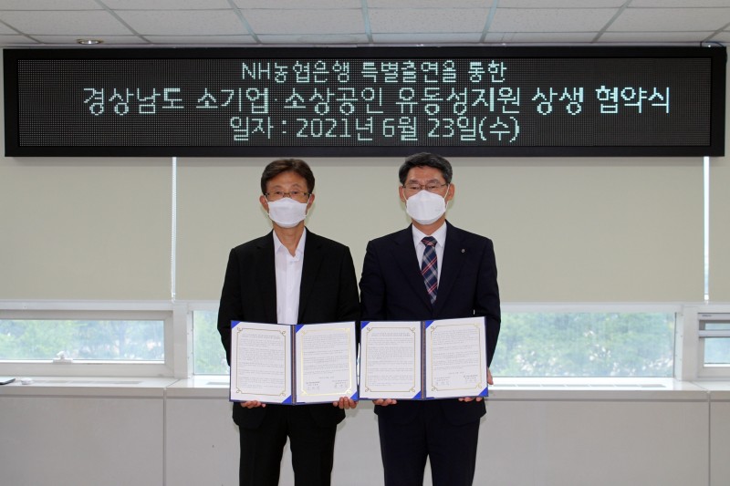 □ 우리 재단과 NH농협은행 경남영업본부가 코로나19 장기화로 어려움을 겪고 있는 도내 소기업·소상공인 지원을 위해 33억 8,600만원 출연을 통한 ‘경상남도 소기업·소상공인 유동성지원 상생협약’을 체결하였다.