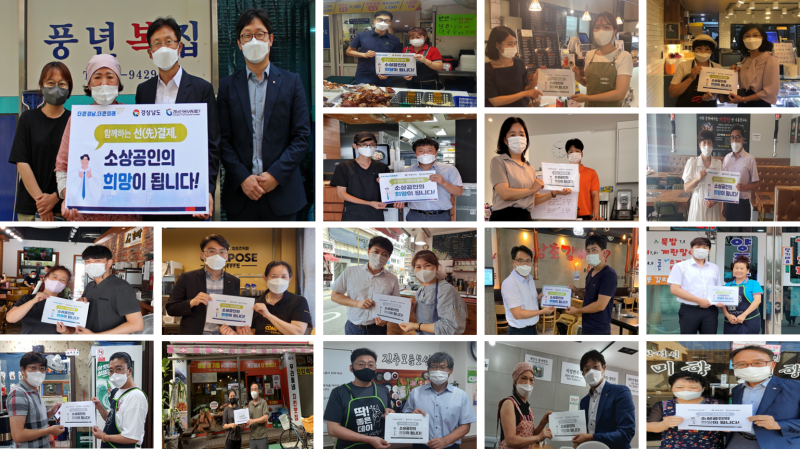 □ 우리재단은 코로나19로 어려움을 겪고 있는 도내 소상공인을 돕고자 본점과 13개 영업점에서 인근 음식점 등을 방문하여 선결제 캠페인을 실시하였다.