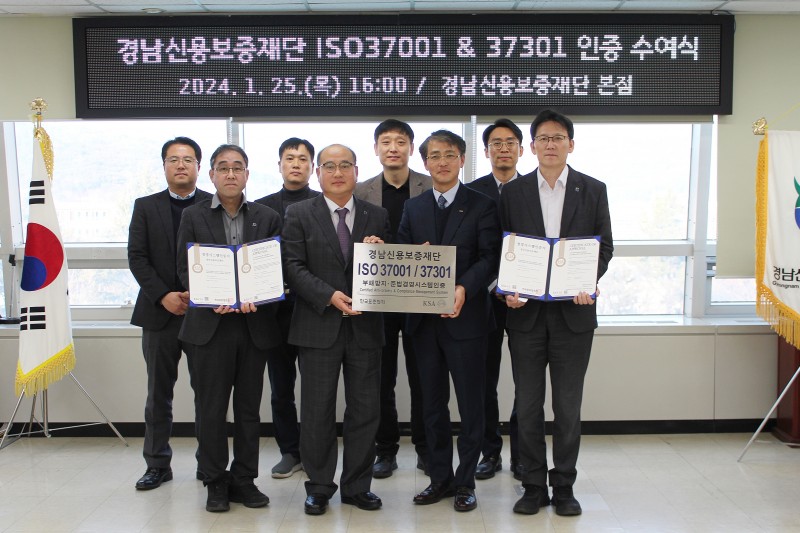 ISO37001 & ISO37301 인증 수여식(2024.01.25) 페이지 정보 작성자경남신용보증재단 댓글 0건 조회 486회 작성일 24-05-24 15:55 본문 □ ISO37001 & ISO37301 인증을 획득하여 인증명패 수여식을 가졌다. 목록 이전글창원천 환경정화 봉사활동(2024.04.30) 24.05.24 다음글신입직원 임용장 수여식(2024.01.02) 24.05.24