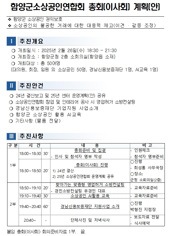2025년 2월 26일 함양군소상공인연합회 총회관련 경상남도신용보증재단 거창지점 협조 건